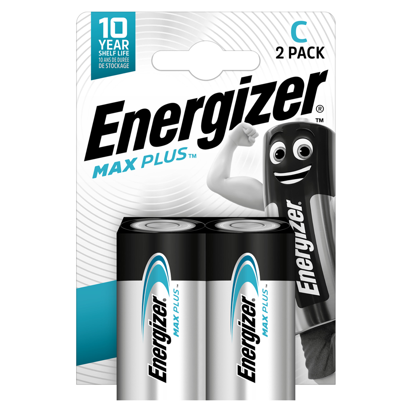 Energizer® C Size Max Plus Alkaline, Pack of 2. Energizer Max Plus boasts being the brands longest lasting alkaline battery that provides powerful performance for your devices. With a 12-year shelf life and leakage protection (for up to 2 years), these batteries are perfect for devices that are infrequently used.