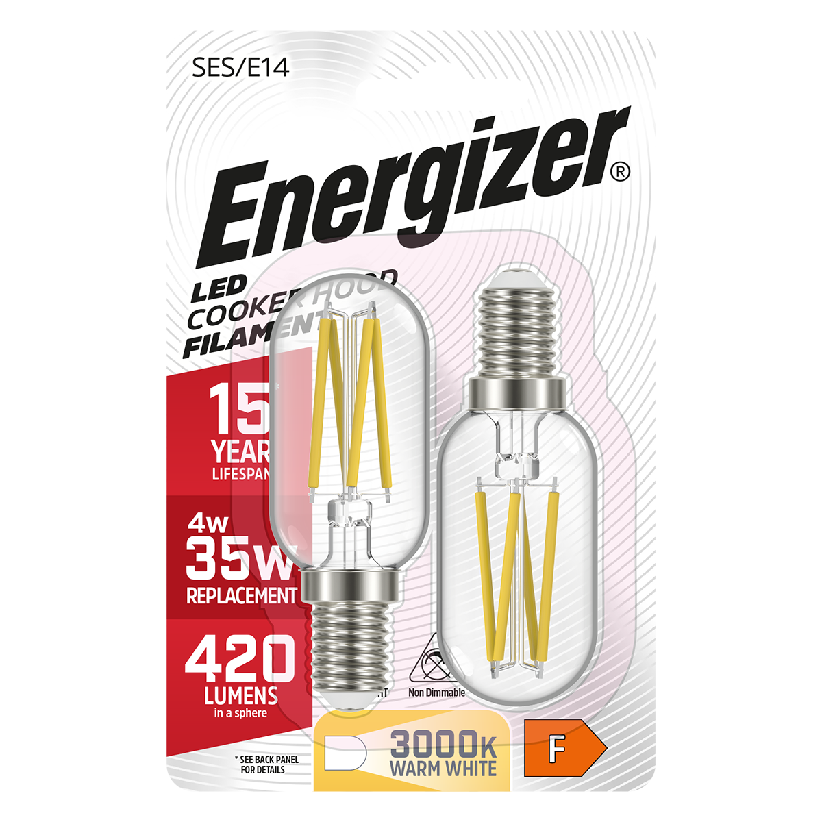 Energizer LED Filament Cookerhood E14 (SES) 420 Lumens 4W 2,700K (Warm White), Blister of 2