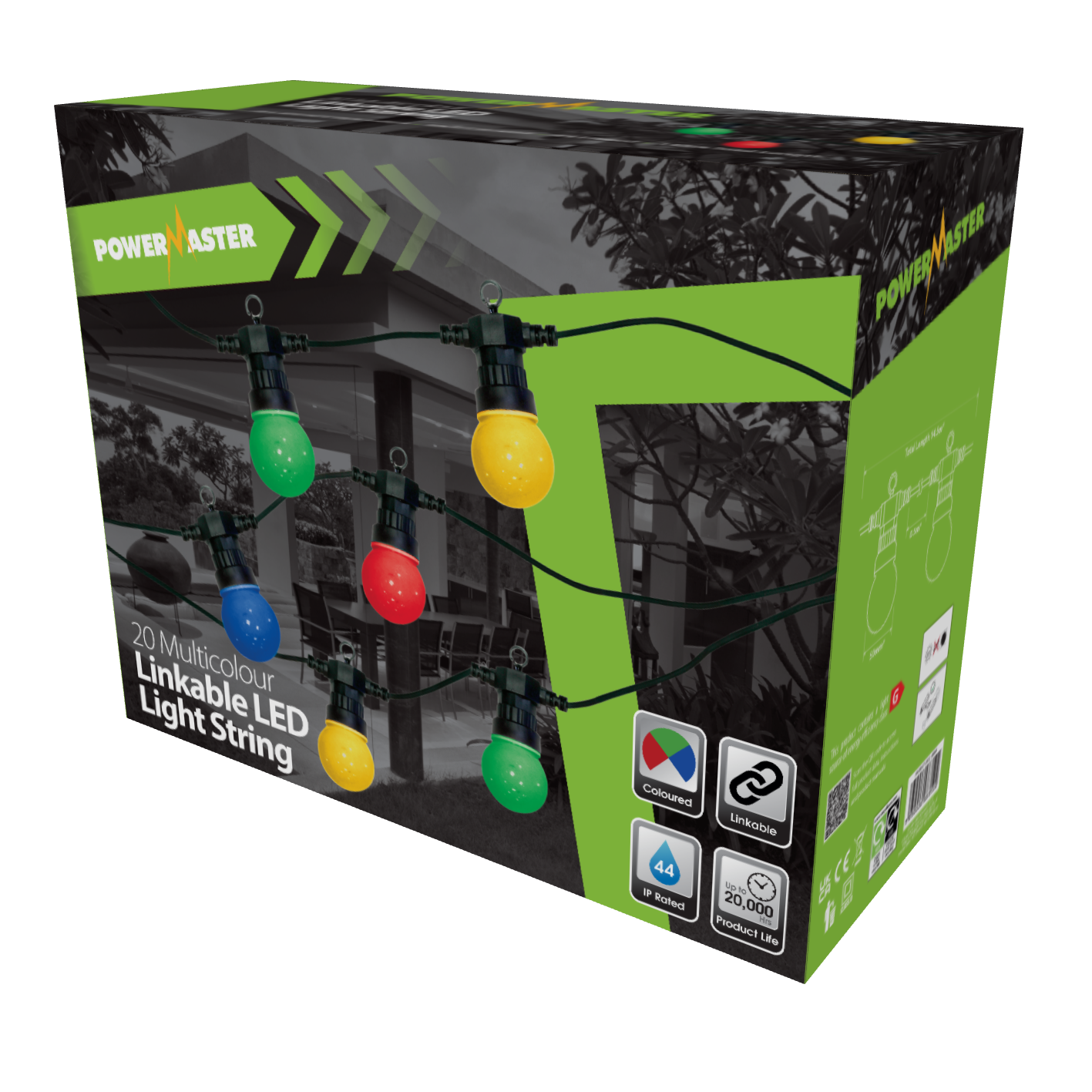 PowerMaster LED 20 Large Globe Festoon String - Coloured