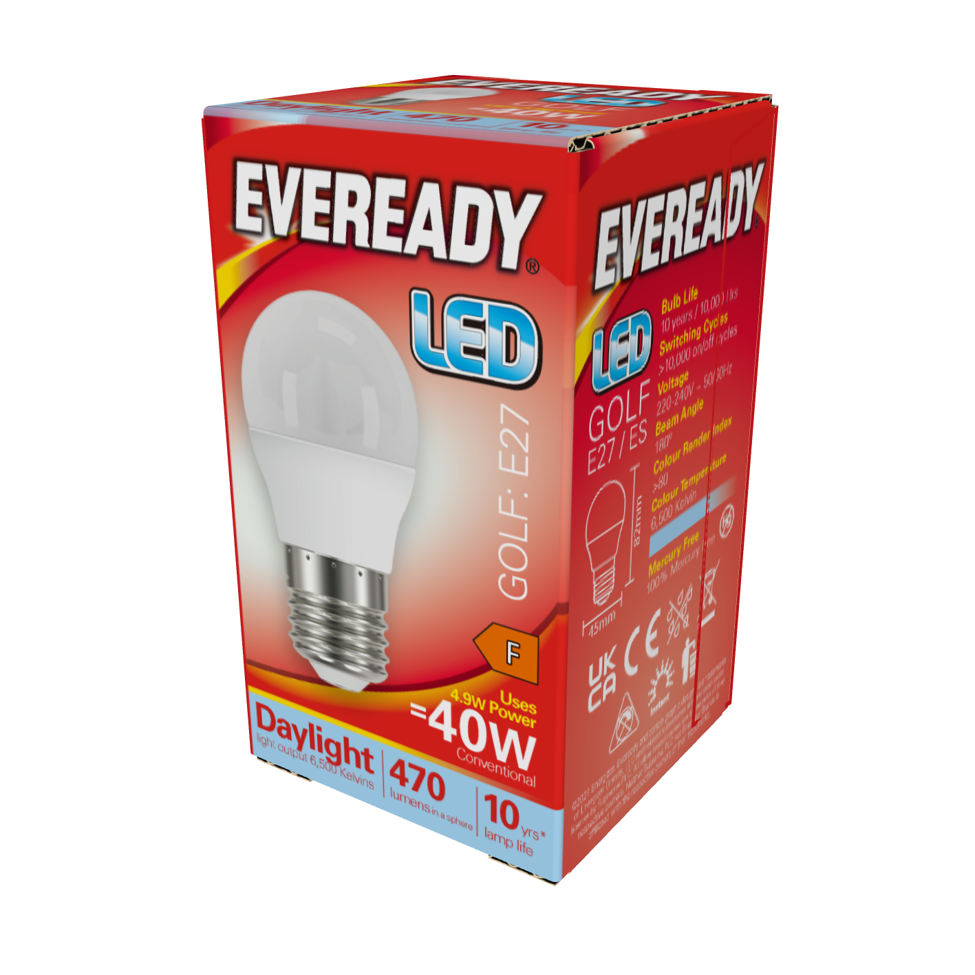 Eveready LED Golf E27 (ES) 470lm 4.9W 6,500K (Daylight), Box of 1