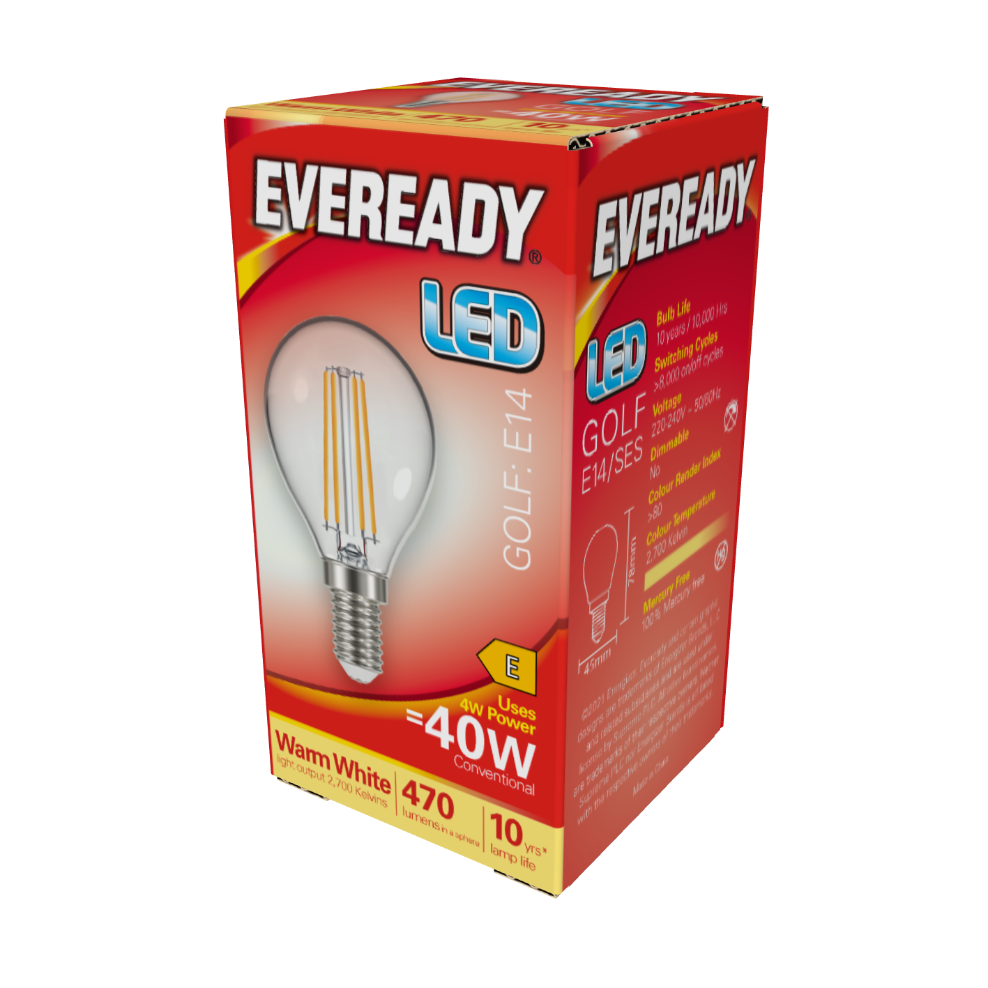 Eveready LED Filament Golf E14 (SES) 470lm 4W 2,700K (Warm White) Box of 1