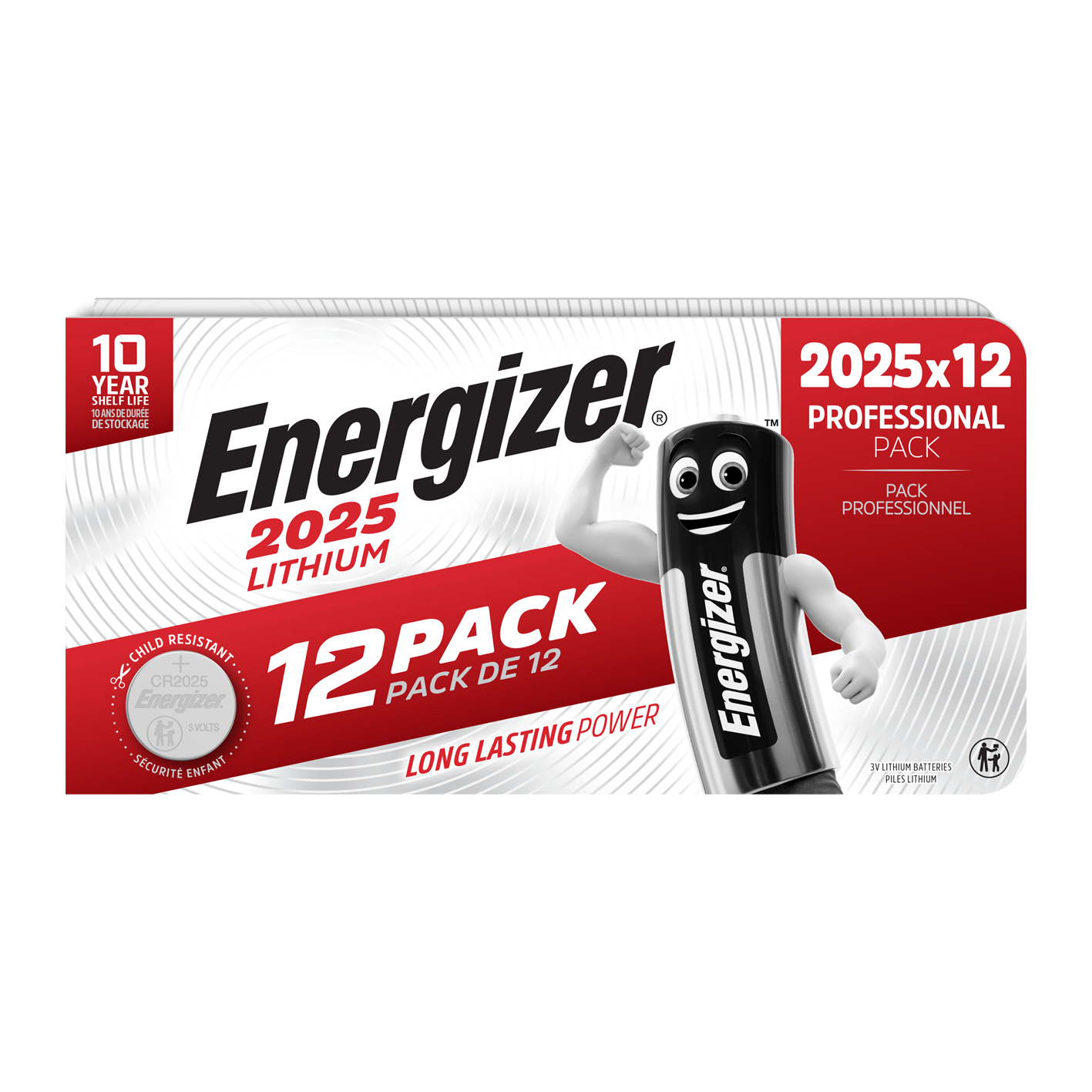 Energizer 2025 lithium - pack of 12 professional pack. Energizer Lithium coin cell batteries offer superior performance and durability, long lasting power from Energizer and a 10 year shelf life. This battery is also compatible with CR2025, 20125, DL2025, BR2025.