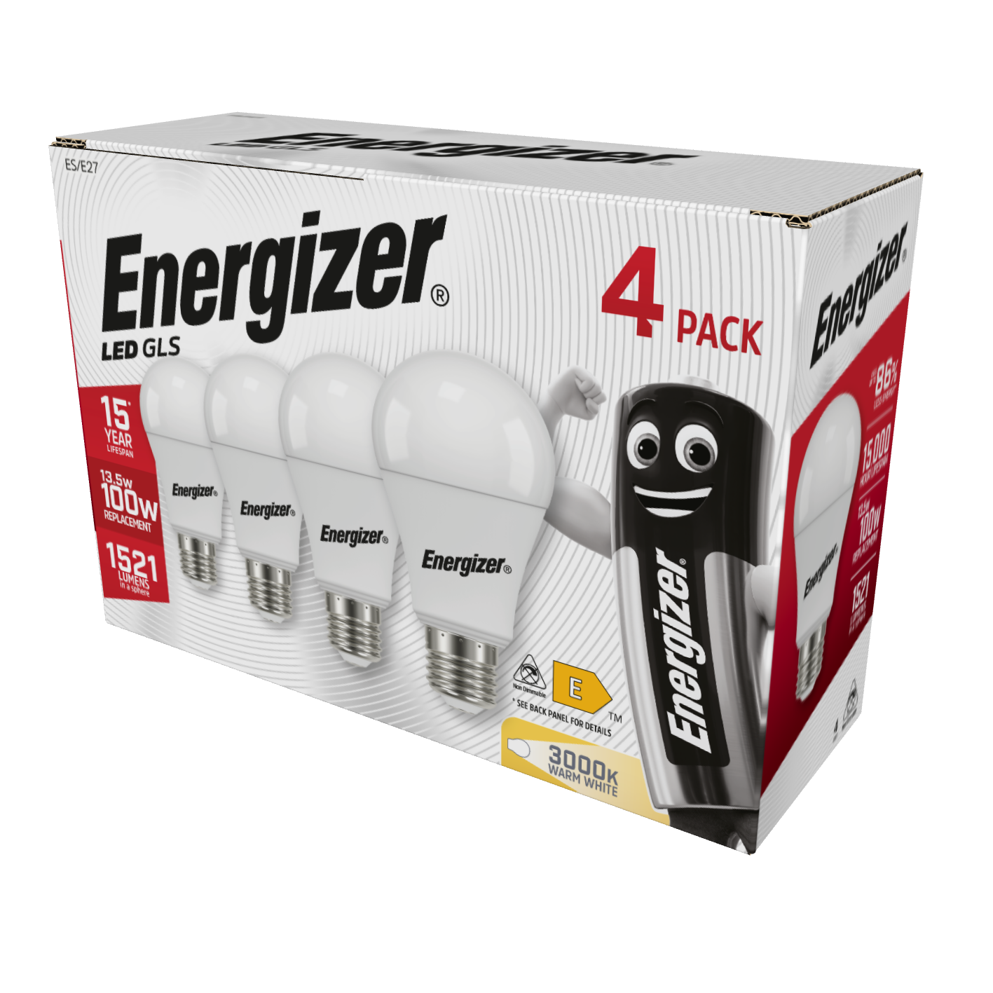 Energizer LED GLS E27 (ES) 1,521lm 13.5W 3,000K (Warm White), Box of 4