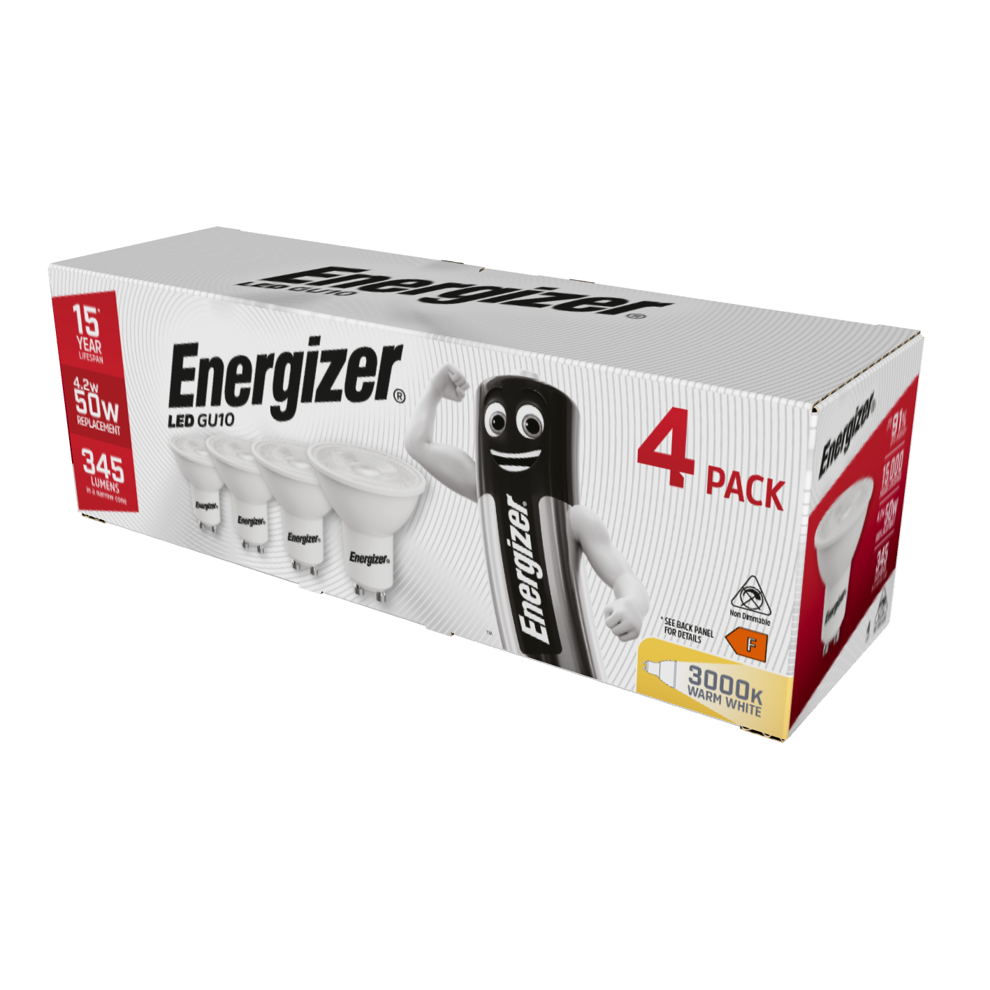 Energizer LED GU10 345 Lumens 4.2W 3,000K (Warm White), Box of 4