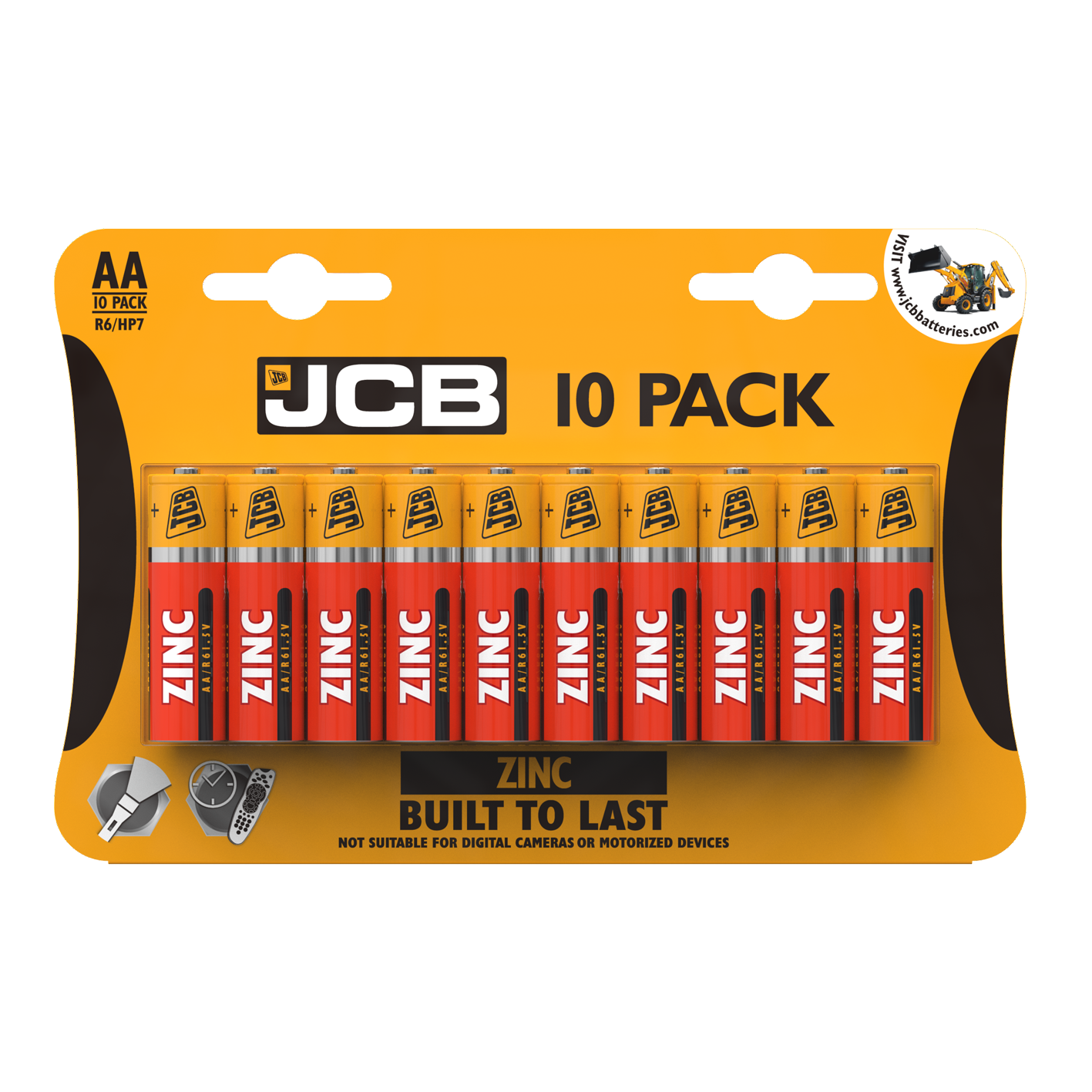 JCB AA Zinc Batteries, Pack of 10
