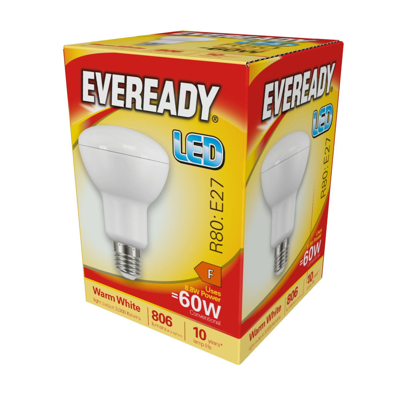 Eveready LED R80 Reflector E27 (ES) 806lm 8.8W 3,000K (Warm White), Box of 1