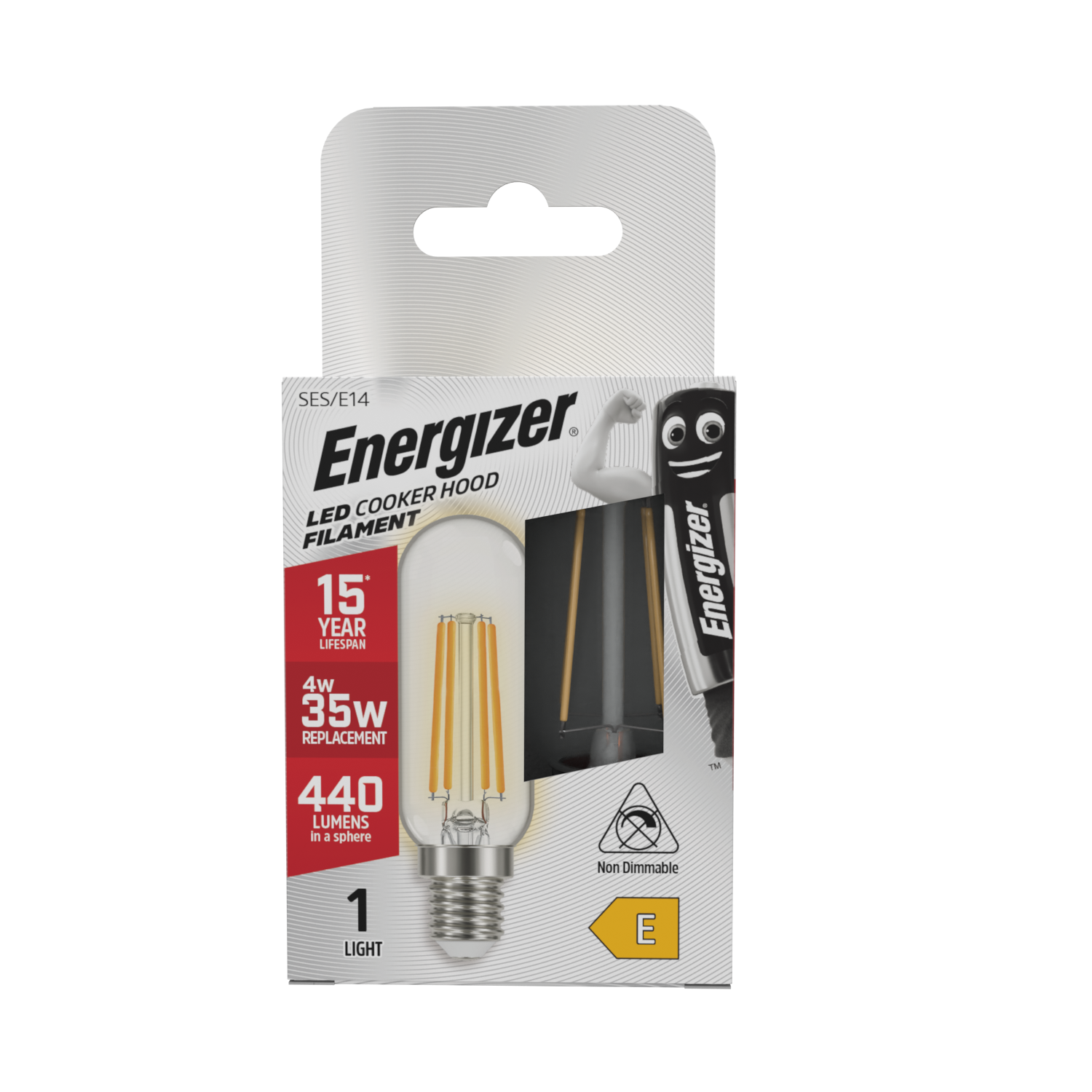 Campana extractora con filamento LED Energizer E14 (SES) 420 lúmenes 4W 3.000K (blanco cálido), caja de 1