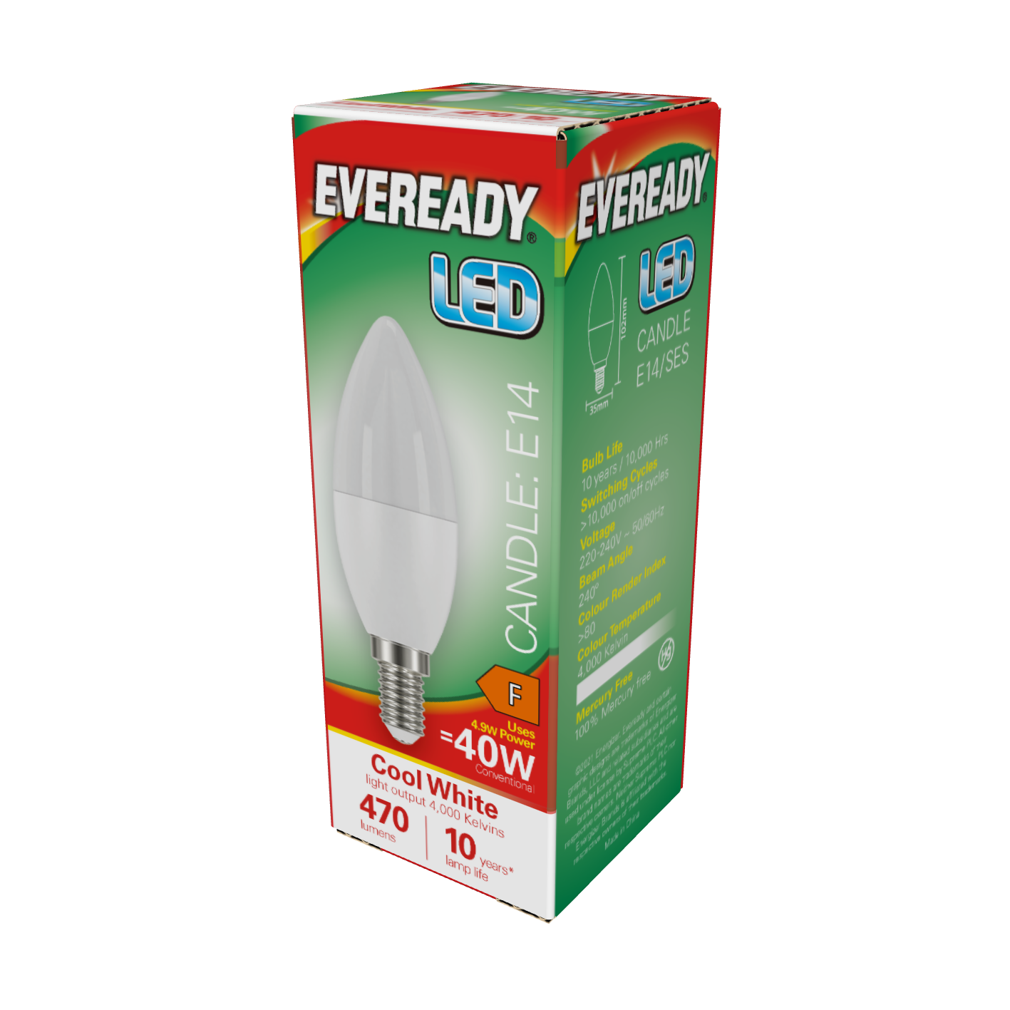 Vela LED Eveready E14 (SES) 470lm 4,9W 4.000K (Blanco Frío), Caja de 1