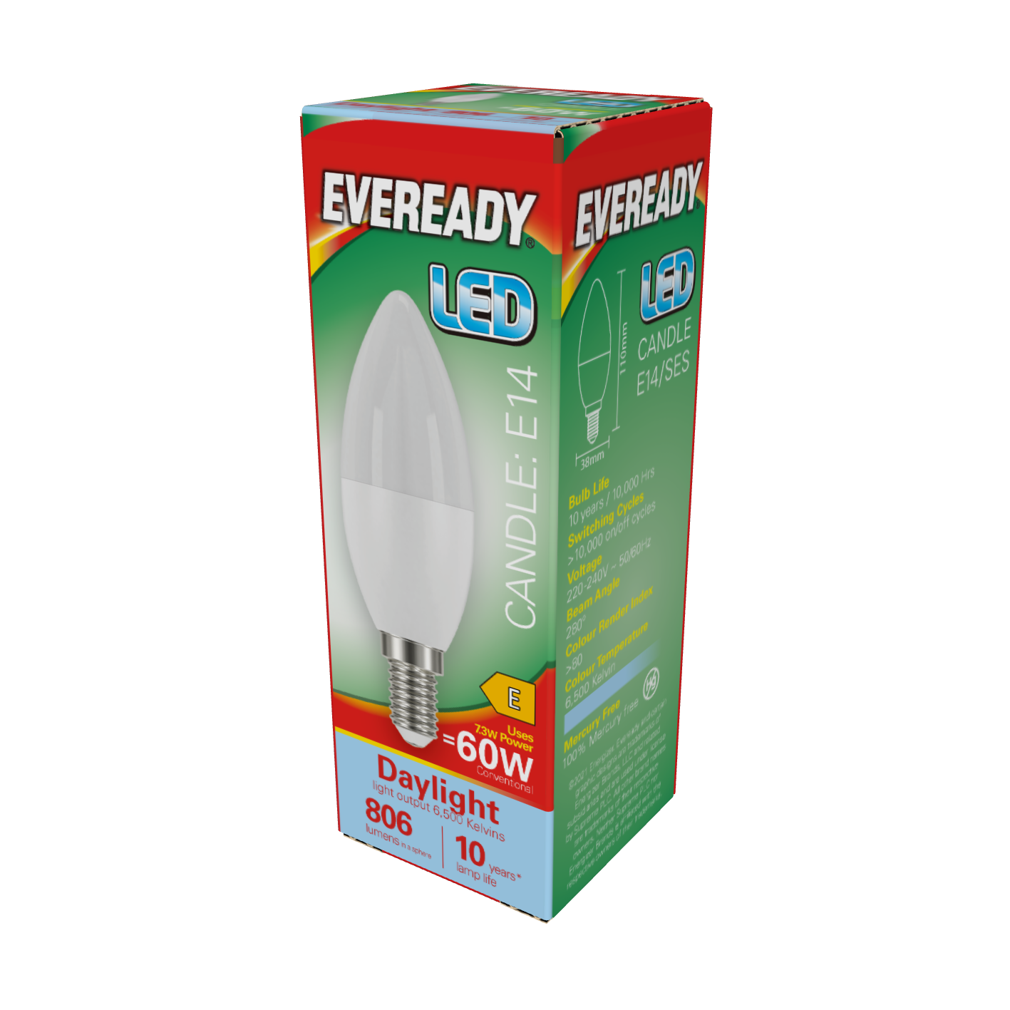 Eveready LED Candle E14 (SES) 806lm 7.3W 6,500K (Daylight), Box of 1