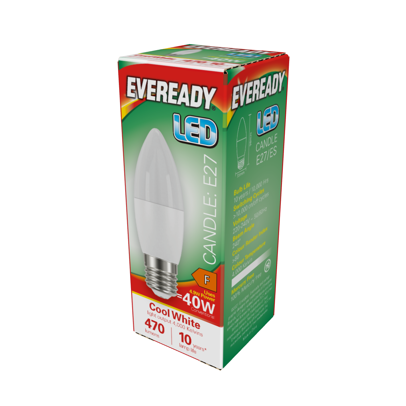 Eveready LED Candle E27 (ES) 470lm 4.9W 4,000K (Cool White), Box of 1