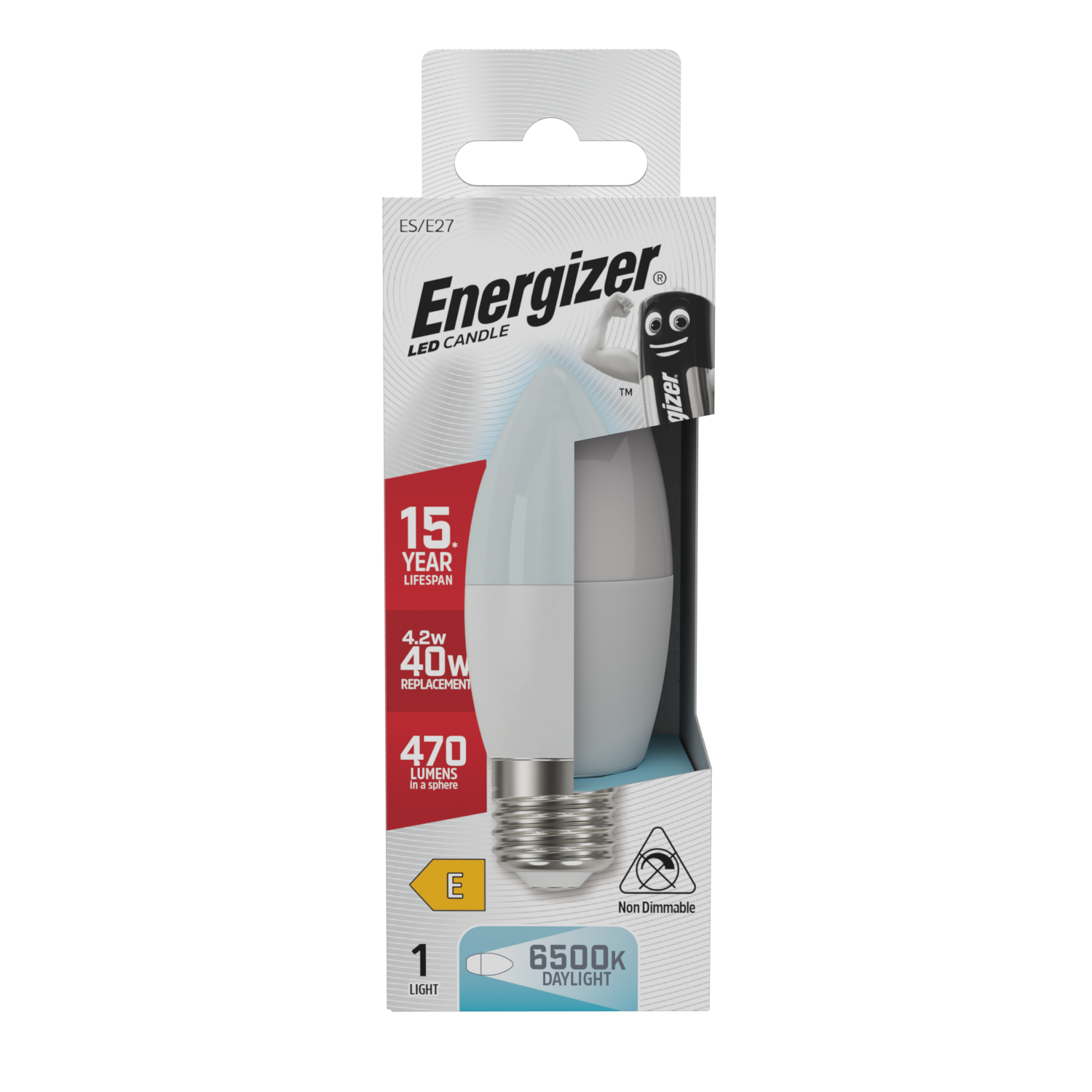 Energizer LED Candle E27 (ES) 470lm 4.2W 6,500K (Daylight), Box of 1